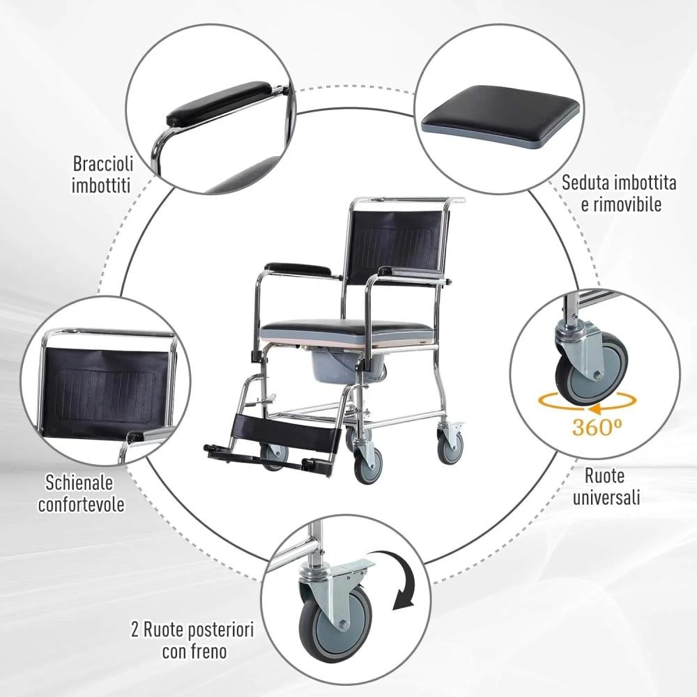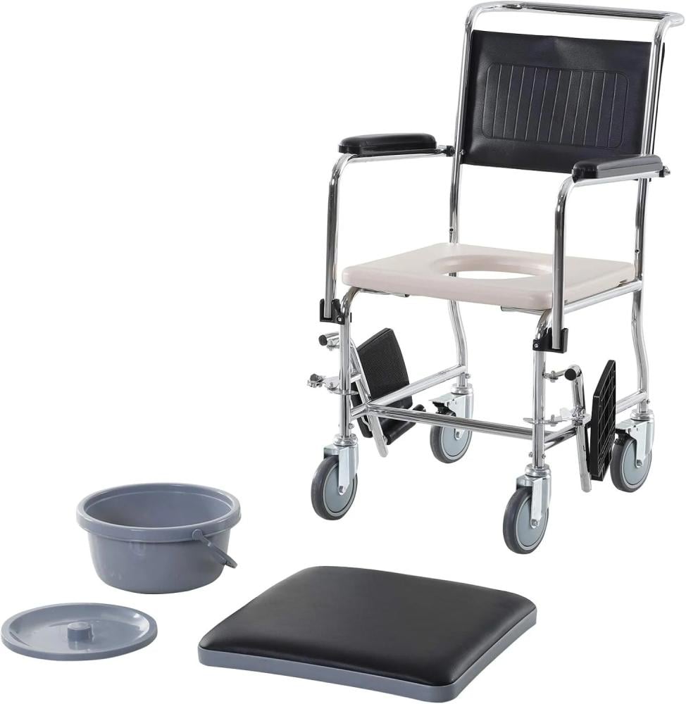 كرسي حمام Commode Drop Arm مع عجلات – مرونة وسهولة الحركة في كل مكان